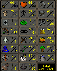 Eoc acc: 81 atk, 99 str, 70 def, 72 range, 44 pray, 94 mage, 87 hitpoints, 65 hunt, 89 mining, and 6m cash. 07 acc: 60 atk, 75 str, 1 def, 47 range, 66 hp, 63 thieving, 65 hunter, 63 smithing, 64 woodcutting. I would post pics and stuff but I'm not sure how to cut out to make it where it just shows the accounts stats.