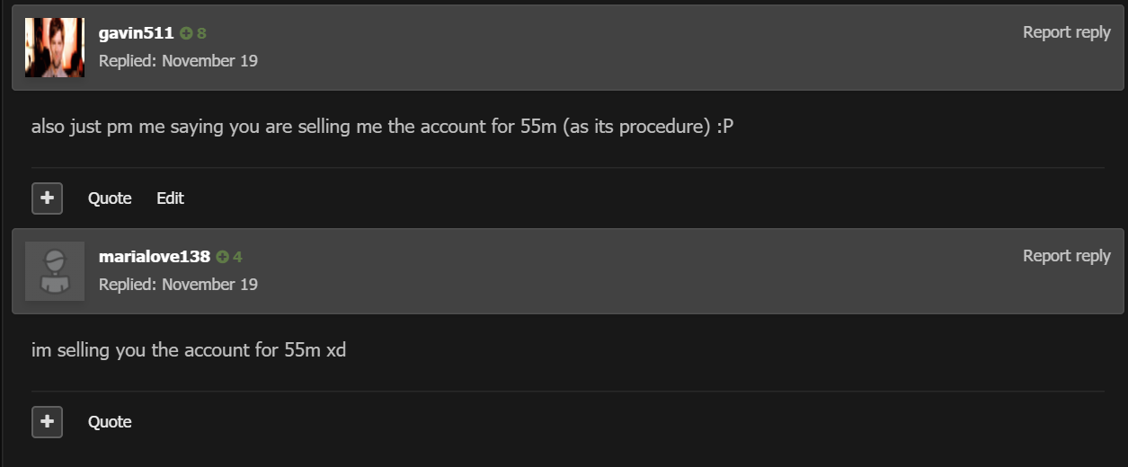 On November 19th I purchased an account advertised by Marialove138 for 55m OSRS GP
