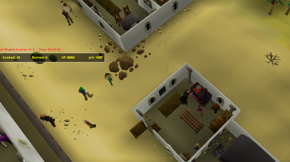 2. Hey, what's up guys I am not much of coder myself, but I used AI to make this simple Al-Kharid Cooking Bot. Every bot I downloaded from here seemed to not work anymore so I went ahead and made one. I am absolutely sure it has much room for improvement, but it works for what it does. I have run it for cooking 120K swordfish, I'm sure with a nice breaking profile you could use for a long time. Hopefully you can use it or make a better version for the community, if there's already a better version and I missed it just never mind this bot hahaha Bot Features Highlights the nearby bank booths and the Al-Kharid range Withdraws raw fish and deposits cooked fish Only interacts with objects when they’re actually visible on the screen Walks between the bank and the range automatically Cooks until the bank is out of raw food If the GUI is closed without picking a fish, the bot safely logs out and stops Tracks fish cooked, fish burnt, XP gained, runtime, and XP/hr Stable 1,000+ swordfish/hr (I was averaging about 1039/hr) Handled States (What the bot can do) This script operates using four clean and simple states: BANK Deposits everything, withdraws 28 raw fish, and handles the “out of food” condition safely. COOK Interacts with the range, handles the “Make X” / spacebar cook interface, and waits until cooking starts. WALK_TO_RANGE Walks to a random tile inside the Al-Kharid range area when not already there. WAIT Used whenever: The GUI is still open The GUI was closed with no selection (script stops) The player is already cooking Dialogues are open The bot needs to pause naturally Frequently Updated : Version 1.2 https://github.com/SpookydevsOfficial/Al-Kharid-Cooking-Bot
