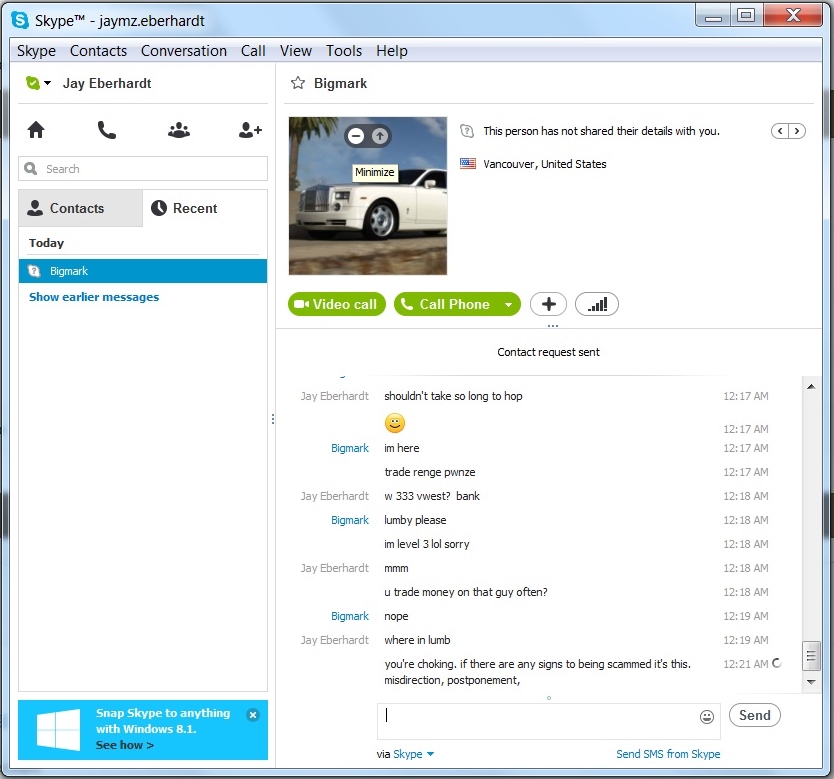 21. wtf? what is it about this conversation that makes me look like im lying? my feed he's n/a? you bailed on me first fuckin christ [11/12/2013 11:15:52 PM] Jay Eberhardt: boatsb4hose 9 for 20 [11/12/2013 11:16:20 PM] *** Bigmark has shared contact details with Jay Eberhardt. *** [11/12/2013 11:16:24 PM] Bigmark: hey mate [11/12/2013 11:16:39 PM] Jay Eberhardt: hey, so how should i go about this [11/12/2013 11:17:10 PM] Bigmark: 1 sec [11/12/2013 11:26:39 PM] Jay Eberhardt: .......yes? [11/12/2013 11:26:53 PM] Bigmark: sorry im back [11/12/2013 11:27:00 PM] Bigmark: how do u wanna pay? [11/12/2013 11:27:20 PM] Jay Eberhardt: i wanted to do bill me later - paypal if you can [11/12/2013 11:27:36 PM] Bigmark: is there anyway u can buy a voucher? [11/12/2013 11:27:56 PM] Jay Eberhardt: first time attempting to buy cash, unaware of what a voucher is [11/12/2013 11:28:23 PM] Bigmark: if you buy a voucher ill go first [11/12/2013 11:28:41 PM] Bigmark: its a code and you can use it on osbt [11/12/2013 11:28:47 PM] Bigmark: you buy it as a gift [11/12/2013 11:29:01 PM] Jay Eberhardt: hmm ill look on site, what do i have to do [11/12/2013 11:29:20 PM] Jay Eberhardt: ok i see buy gift voucher [11/12/2013 11:29:33 PM] Bigmark: ok [11/12/2013 11:30:19 PM] Jay Eberhardt: so buy gift voucher, 20$ worth, then what [11/12/2013 11:31:30 PM] Bigmark: did you buy it? [11/12/2013 11:31:52 PM] Jay Eberhardt: haven't yet, im just on buy gift voucher page, gotta enter in recipient's name [11/12/2013 11:32:05 PM] Bigmark: mustafa x11 [11/12/2013 11:32:17 PM] Bigmark: this is gonna charge u $5 by the way im pretty sure [11/12/2013 11:32:35 PM] Bigmark: if you use paypal its only 0.30 cents i believe [11/12/2013 11:33:00 PM] Jay Eberhardt: d'aww ;( k well ill continue with vouch, "send gift voucher by email or print"? [11/12/2013 11:33:15 PM] Bigmark: mustafa x11 [11/12/2013 11:33:20 PM] Bigmark: email [11/12/2013 11:34:07 PM] Jay Eberhardt: and put in ur hotmail? [11/12/2013 11:34:16 PM] Bigmark: gmail [11/12/2013 11:34:26 PM] Bigmark: 54mirza@gmail.com [11/12/2013 11:35:07 PM] Jay Eberhardt: so if ur going to trade the money first, how come you want me to buy voucher fist [11/12/2013 11:35:09 PM] Jay Eberhardt: first* [11/12/2013 11:35:17 PM] Jay Eberhardt: just clarify, i'm friggin new at this [11/12/2013 11:35:22 PM] Bigmark: no you will get a code [11/12/2013 11:35:34 PM] Bigmark: then you send me the code once i trade u the gold [11/12/2013 11:38:27 PM] Jay Eberhardt: ok bought, now do i check osbot email or my paypals primary email [11/12/2013 11:38:42 PM] Bigmark: wait let me check [11/12/2013 11:39:01 PM] Bigmark: its osbot email [11/12/2013 11:39:49 PM] Jay Eberhardt: i dont see any new emails comin through osbot [11/12/2013 11:40:03 PM] Bigmark: wait [11/12/2013 11:40:08 PM] Jay Eberhardt: i got an email on my primary paypal [11/12/2013 11:40:37 PM] Jay Eberhardt: i have a "invoice #xxxxxx - gift voucher: $20.00 [11/12/2013 11:41:00 PM] Bigmark: you gonna get a code [11/12/2013 11:41:11 PM] Bigmark: give it a few minutes meet me w333 [11/12/2013 11:41:29 PM] Bigmark: yo if u want i can sell u more gold for cheaper [11/12/2013 11:42:31 PM] Bigmark: i have 56m if u want anymore btw [11/12/2013 11:42:33 PM] Jay Eberhardt: i can't right now. but in the future i would [11/12/2013 11:42:43 PM] Jay Eberhardt: money's tight ;P [11/12/2013 11:42:49 PM] Bigmark: ill sell u for 1.75m [11/12/2013 11:42:51 PM] Bigmark: do u work? [11/12/2013 11:42:52 PM] Jay Eberhardt: k im in vwest [11/12/2013 11:42:58 PM] Bigmark: ok [11/12/2013 11:43:03 PM] Jay Eberhardt: i do work and go to college [11/12/2013 11:43:17 PM] Bigmark: ur rich lol [11/12/2013 11:43:29 PM] Bigmark: i work and make a pretty good ammoun [11/12/2013 11:43:32 PM] Jay Eberhardt: i'd be alright if i wasn't going to college [11/12/2013 11:43:35 PM] Bigmark: yo ill brb okay? [11/12/2013 11:43:42 PM] Bigmark: ill be back in 10 min [11/12/2013 11:43:56 PM] Bigmark: sound good? [11/12/2013 11:44:05 PM] Jay Eberhardt: why all of a sudden? [11/12/2013 11:44:12 PM] Bigmark: my dads calling me [11/12/2013 11:44:24 PM] Jay Eberhardt: hmm better see u soon then. [11/12/2013 11:56:25 PM] Jay Eberhardt: sooooooooooooooooooooo 12 minutes [11/12/2013 11:56:34 PM] Jay Eberhardt: prepping dispute [11/12/2013 11:57:59 PM] Bigmark: hey [11/12/2013 11:58:03 PM] Bigmark: back sorry [11/12/2013 11:58:08 PM] Jay Eberhardt: mk 333 [11/12/2013 11:58:11 PM] Bigmark: ok [11/12/2013 11:58:16 PM] Jay Eberhardt: vwest [11/12/2013 11:58:17 PM] Bigmark: do u have the code [11/12/2013 11:58:42 PM] Jay Eberhardt: i have a generated invoice [11/12/2013 11:58:48 PM] Jay Eberhardt: # [12:01:18 AM] Jay Eberhardt: harro? [12:02:23 AM] Bigmark: wair [12:02:33 AM] Bigmark: can you send me halfthe invoice number? [12:03:51 AM] Jay Eberhardt: gl with that dispute [12:04:48 AM] Bigmark: are u retarded [12:04:56 AM] Bigmark: u havn't even sent me money lmao [12:04:56 AM] Jay Eberhardt: ok, u logged off so i was concerned [12:05:01 AM] Bigmark: lol [12:05:06 AM] Bigmark: i would be too sorry [12:06:22 AM] Bigmark: yo can i just give u a dchain? [12:07:11 AM] Jay Eberhardt: well that's at 6m currently, so dchain and 3m would suffice [12:07:30 AM] Bigmark: fk man [12:07:36 AM] Bigmark: i bought it for 14m lmaoo [12:07:43 AM] Bigmark: ill just give u gold then [12:07:45 AM] Jay Eberhardt: Invoice #264 [12:07:51 AM] Jay Eberhardt: 3 nubmers after that too [12:07:55 AM] Bigmark: give me a minute transfering from acc [12:12:06 AM] Bigmark: come to my world [12:12:11 AM] Bigmark: 369 [12:12:13 AM] Jay Eberhardt: u said 333 lmao [12:12:15 AM] Jay Eberhardt: wtf [12:12:25 AM] Bigmark: sorry i had to hop [12:12:28 AM] Jay Eberhardt: come to 333 vwest [12:12:36 AM] Bigmark: ok [12:17:05 AM] Jay Eberhardt: shouldn't take so long to hop [12:17:08 AM] Jay Eberhardt: [12:17:14 AM] Bigmark: im here [12:17:19 AM] Bigmark: trade renge pwnze [12:18:01 AM] Jay Eberhardt: w 333 vwest? bank [12:18:12 AM] Bigmark: lumby pl
