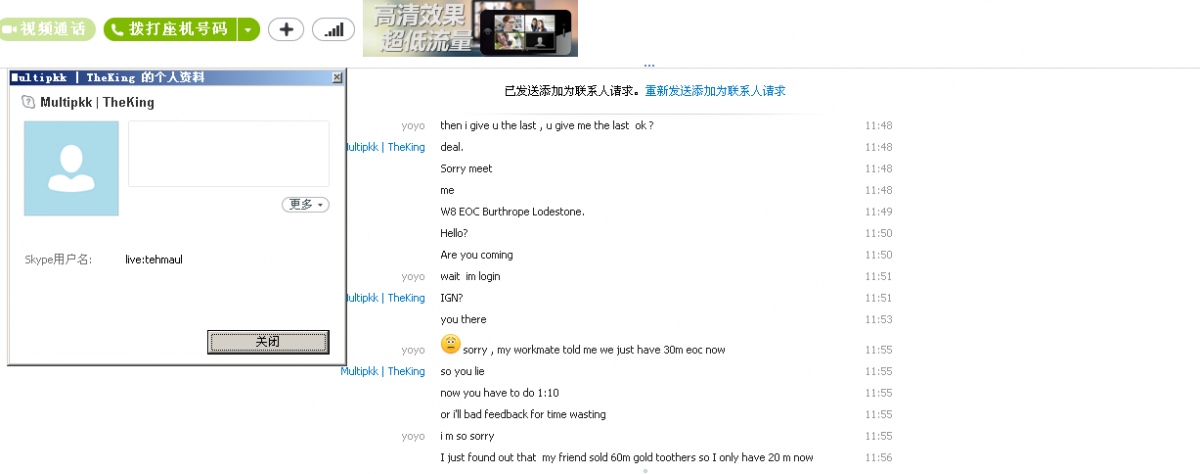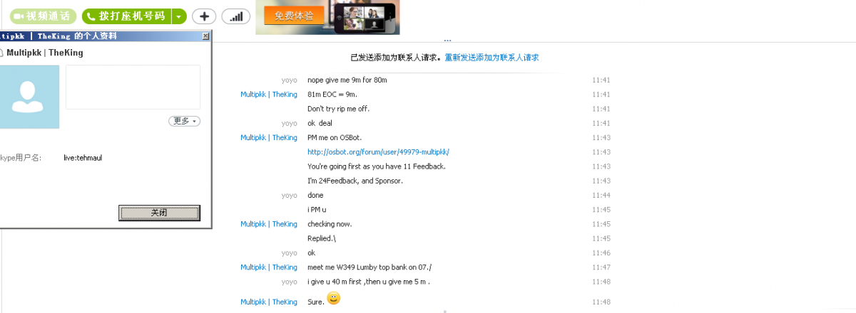 Disputed Member: live:tehmaul Why it should be removed: He give me a bad FB because I don't agree on the rate he offered ,I think I have the right to decide if I want to trade or not ,and he said Im wasting his time , but you put time on this , I did too ,I don't want to wasting anyone's time ,just want to do business here, and if you threaten me to trade you , the answer will always be NO , so masters plz look into this case remove the bad FB Details: he wants to swap his 9m 07 gold with my 81m EOC gold, I said ok cause I think I have 81m in my acc , then I login into my acc found that I only have 30m EOC in my acc and I told him that I only have 30 m now , then he said I'm wasting his time and threaten to higher the rate to 1:10 ,as you know the price for both EOC and 07 now , I can't do 1:10 or i will lose my money so I refused , he said he will give me a bad FB . Link to topic:http://osbot.org/forum/index.php?app=members&module=messaging§ion=view&do=showConversation&topicID=28852&st=0#msg86811