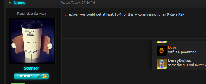 1. Pictures of the account stats: check picture 2. Pictures of the login details: check picture 3. Pictures of the total wealth: only 1.5k nats 4. Pictures of the quests completed: check picture 5. The price you will be starting bids at: 10m 6. The A/W (Auto-win) for your account: 25m 7. The methods of payment you are accepting: rs07 8. Your trading conditions: u go first 9. Account status: check picture 10. Original/previous owners AnD Original Email Address: u will get original email adress