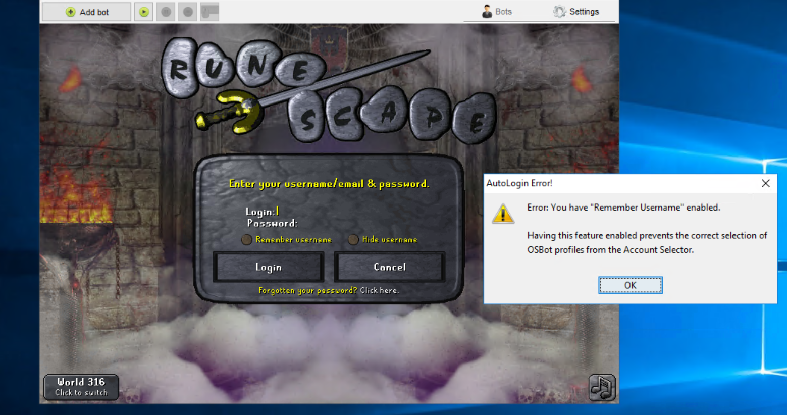 "Error Remember username is enabled"