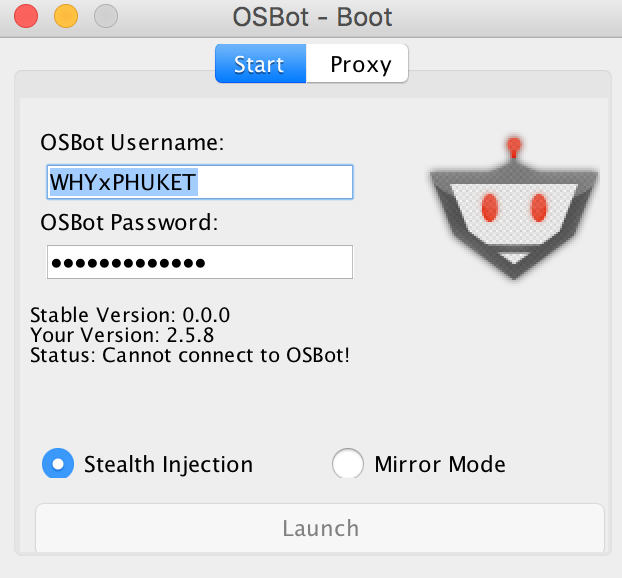 I stopped playing for about 1 year to take a break from botting. Decided to come back but it seems I can't connect to OSRBOT with the latest version or the dev build. Any suggestions as to why I cant connect?